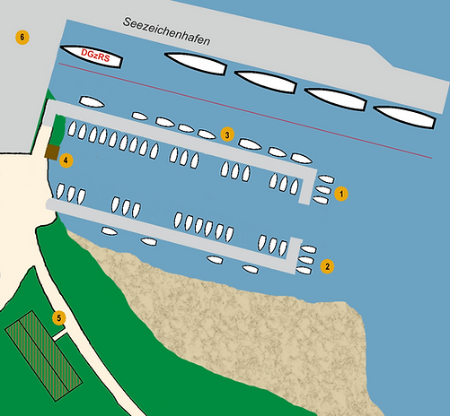 Unsere Steganlagen befinden sich im Bereich des Seezeichenhafens beim Wasser- und Schifffahrtsamt. In unserem gemütlichen Clubhaus wartet ein Restaurant mit Hafenmeisterei auf euch, ebenso wie sanitäre Anlagen.